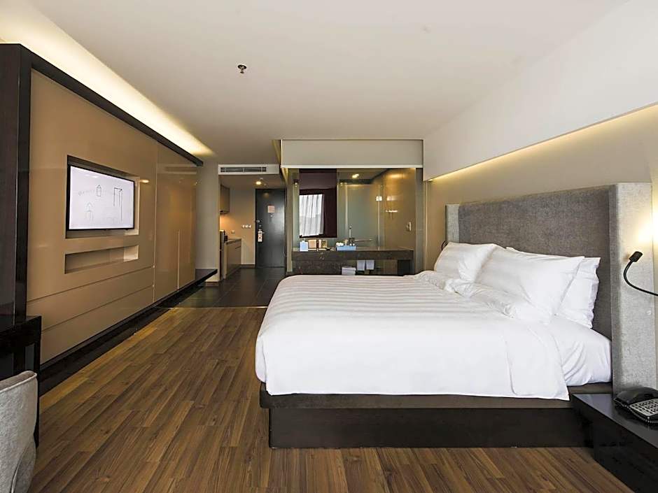 Featuring contemporary décor, the superior king studios feature a fully-equipped kitchenette and a separate living area. Each room is also fitted with an IPTV, rain shower facilities and free WiFi access. Guests also have access to the 24-hour fitness center, swimming pool and sauna room as well as public laundry facilities.